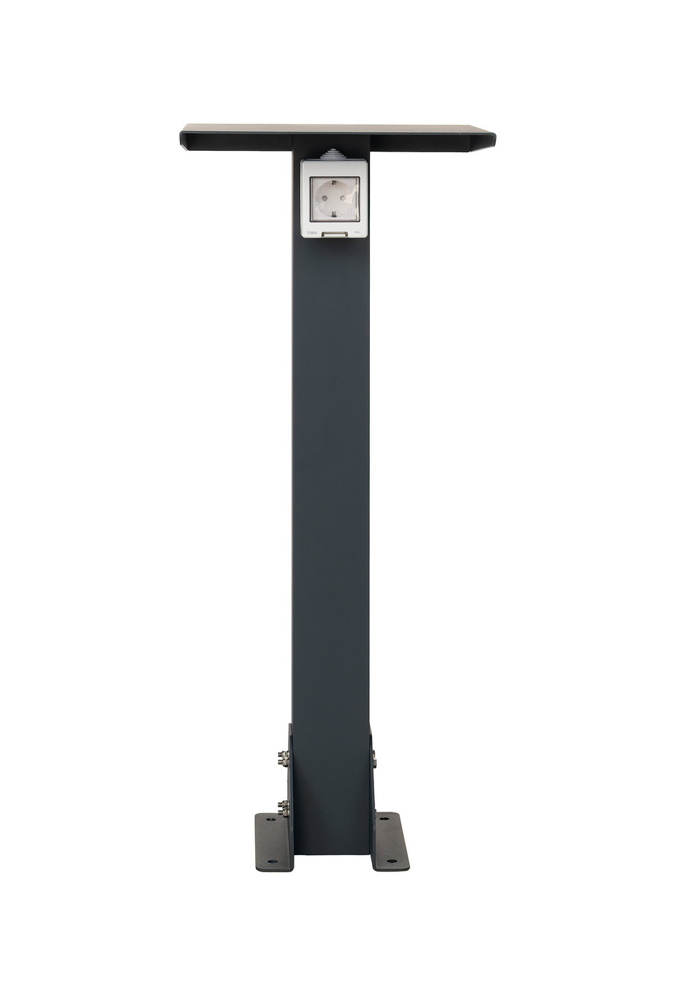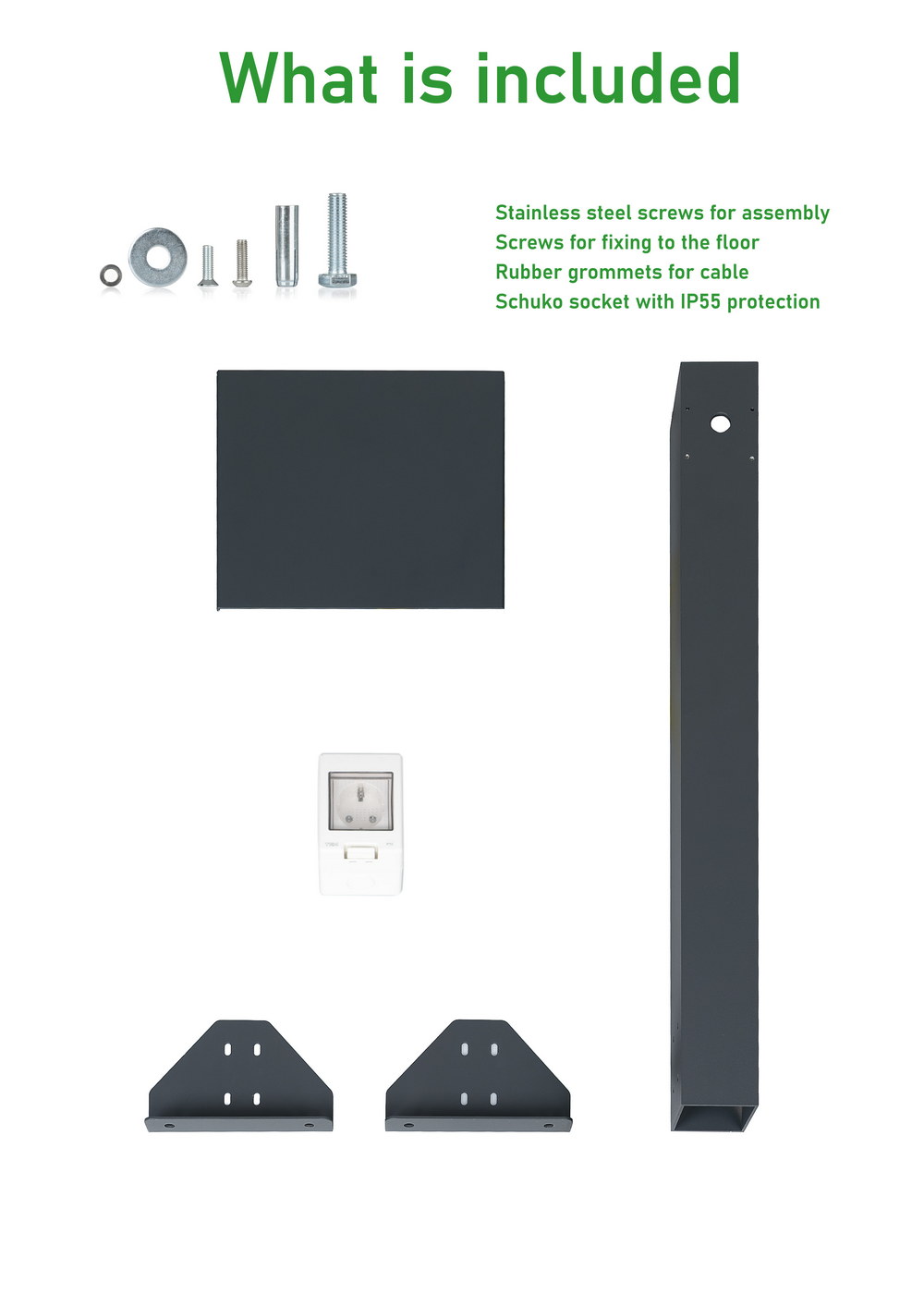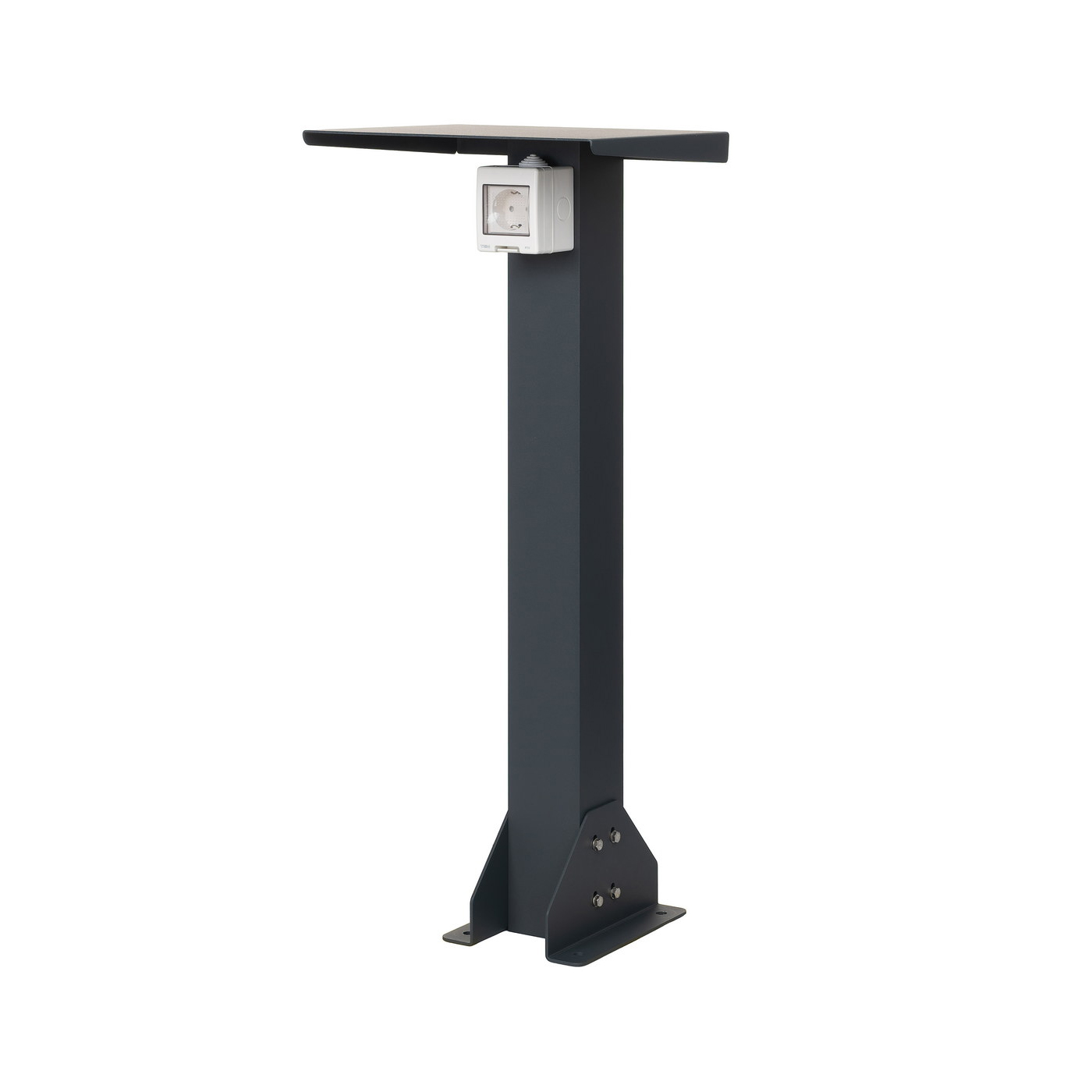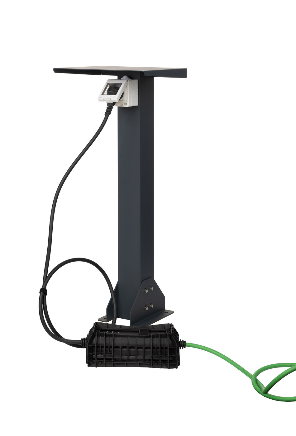Protezione dagli agenti atmosferici: Il tettuccio in alluminio protegge efficacemente la presa da pioggia e altri agenti atmosferici. La presa è installata a un’altezza di 80 cm, evitando il contatto con eventuali schizzi d’acqua dovuti al rimbalzo della pioggia sul suolo.