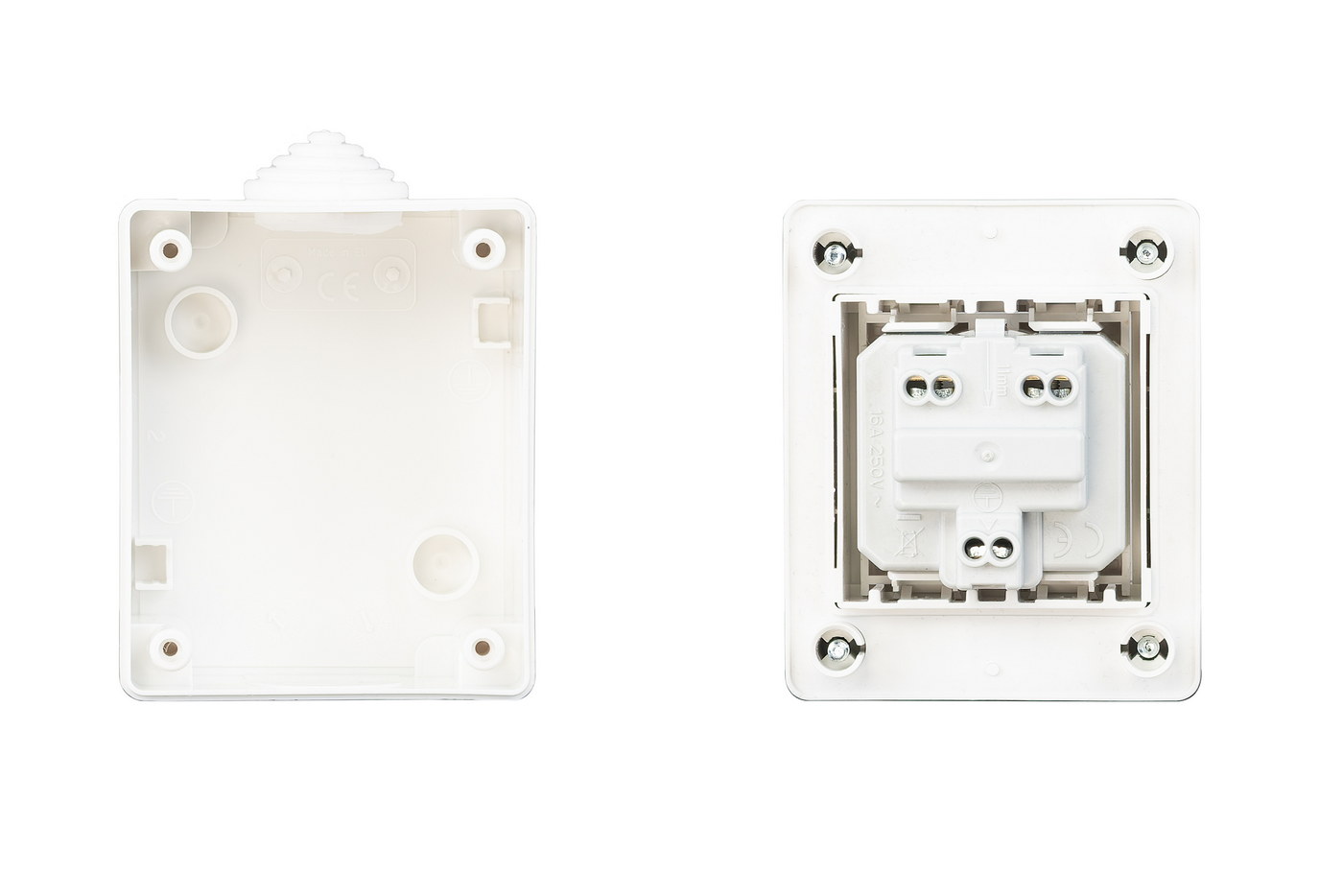 Tipo di presa: Presa Schuko da parete 16A 3P 250V, adatta a collegamenti elettrici standard fino a 16 A. Con grado di protezione IP55, è idonea per uso esterno e per il collegamento di elettrodomestici, utensili, illuminazione esterna, ricarica di biciclette elettriche e tosaerba.