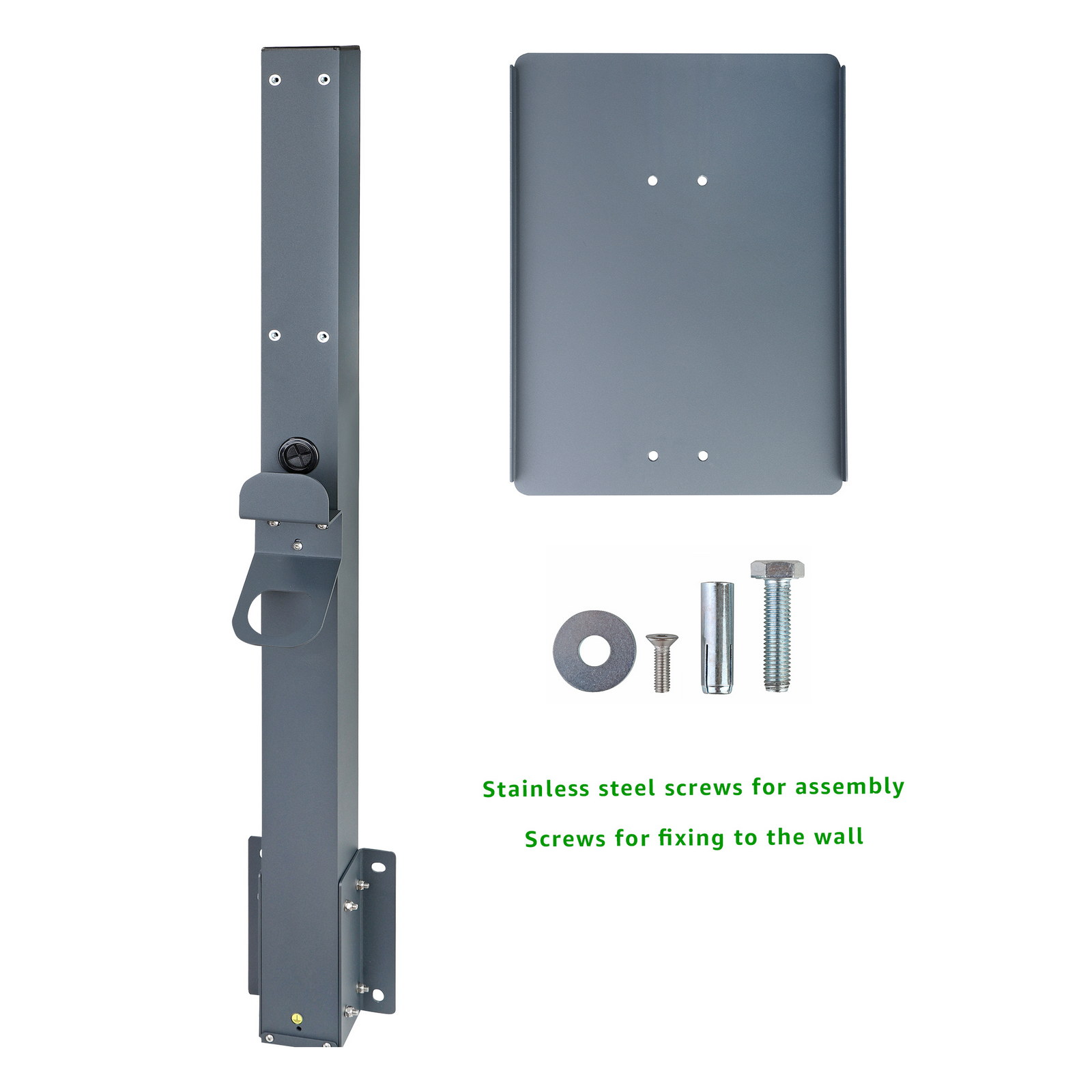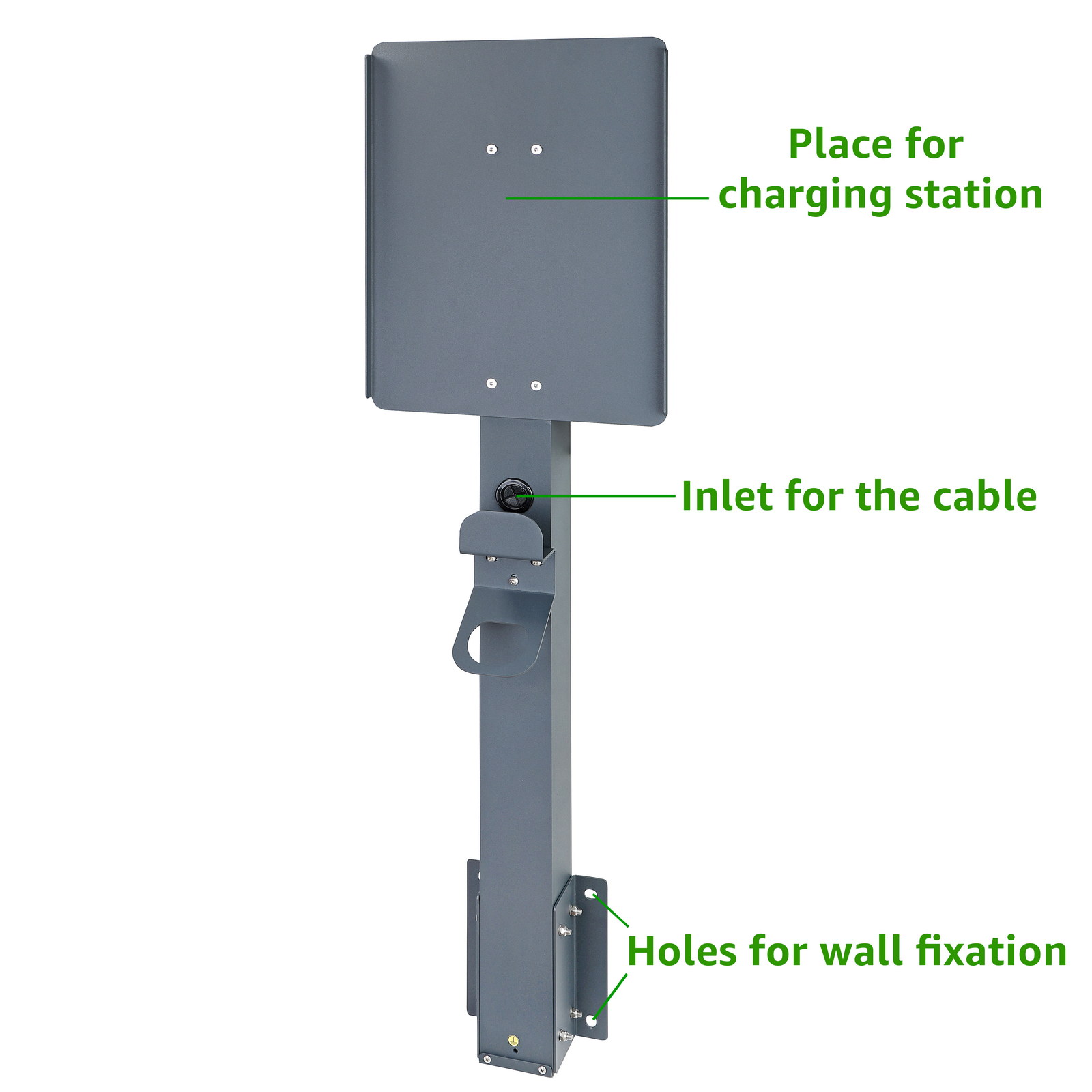 Costruzione di qualità: Il supporto per stazione di ricarica è realizzato in alluminio di alta qualità e verniciato a polvere (RAL7016). Questo garantisce resistenza e lunga durata senza rischio di corrosione. Il supporto è progettato e prodotto in conformità agli standard internazionali ISO e agli standard europei EN.